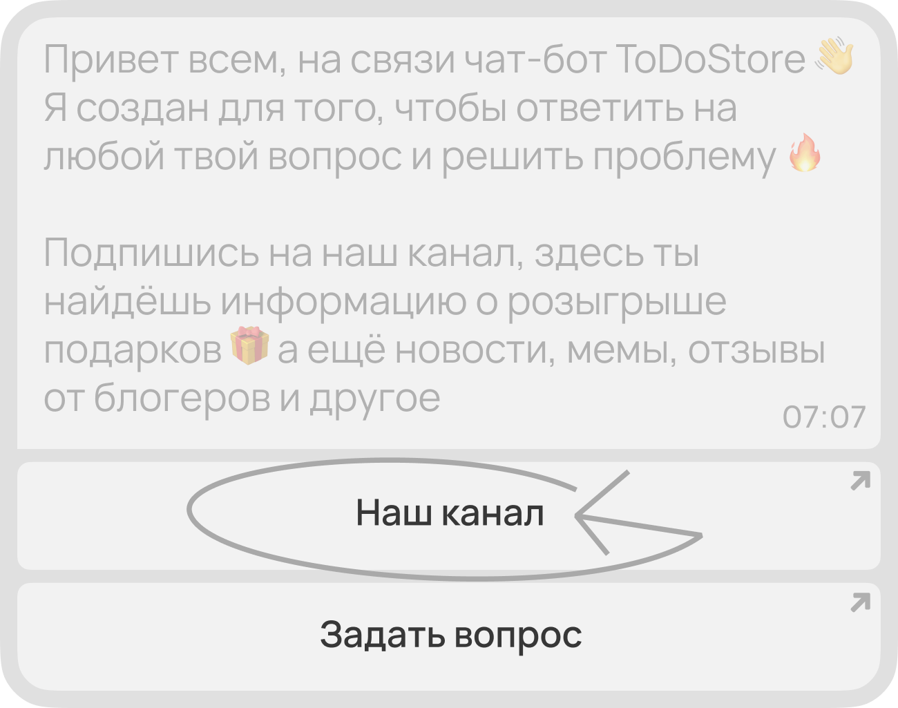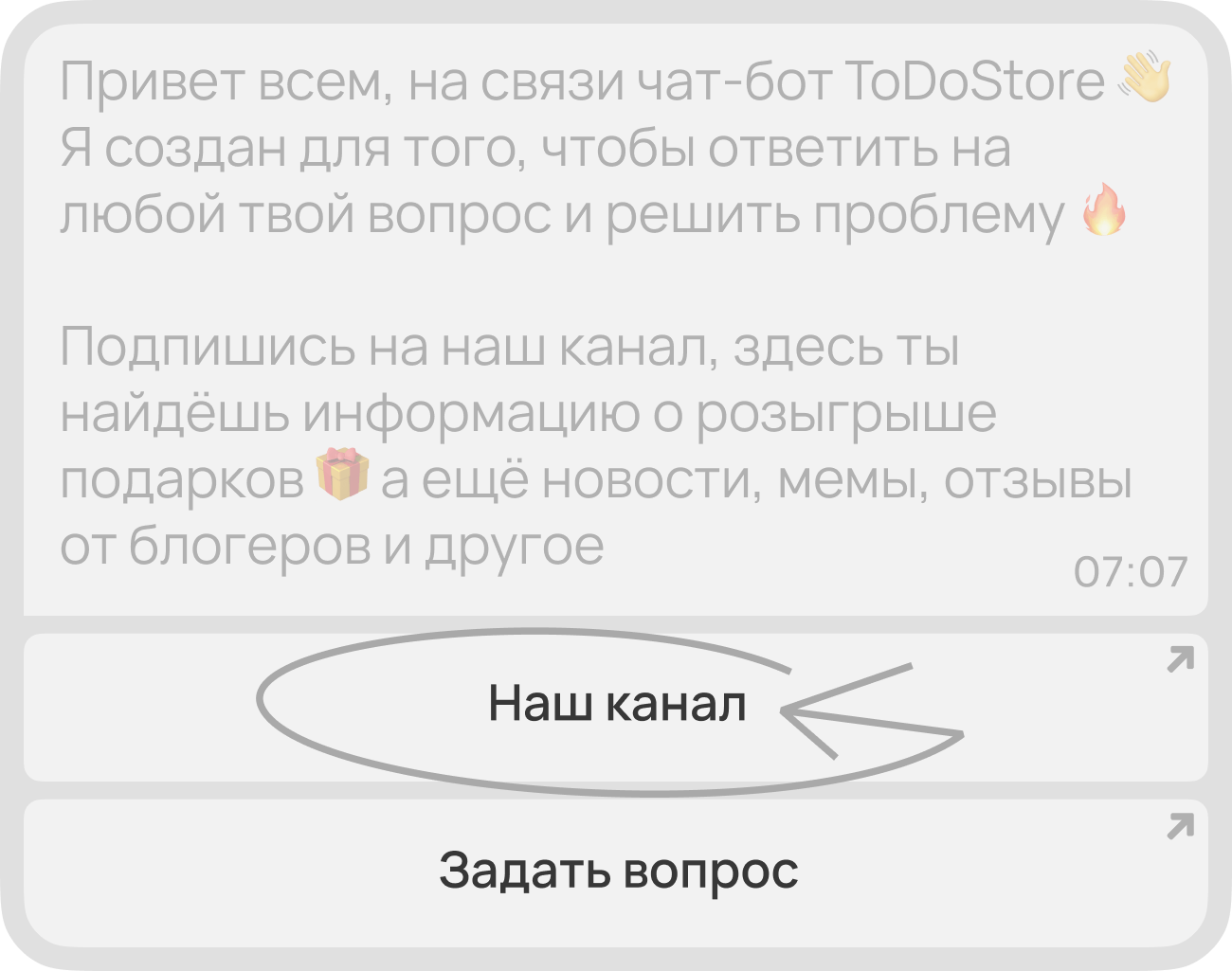 После нажатия на кнопку в начале сайта вы перейдёте в Телеграм-бота, там нужно нажать на кнопку «Наш канал»;